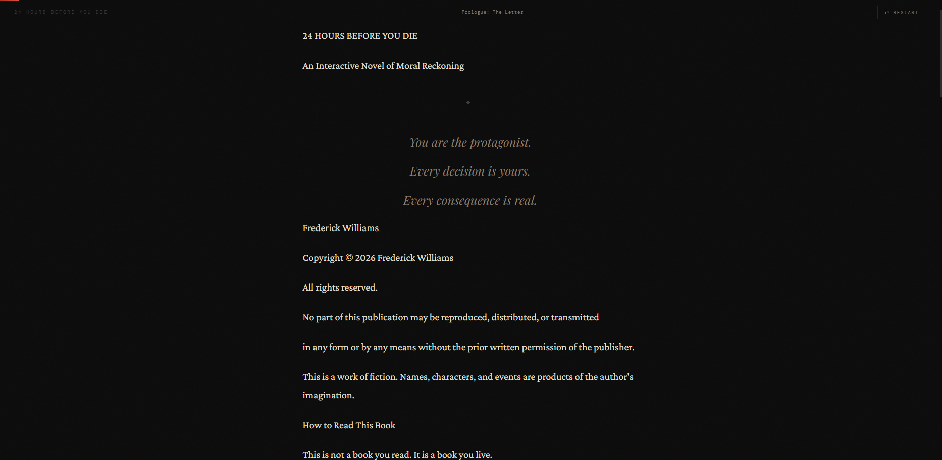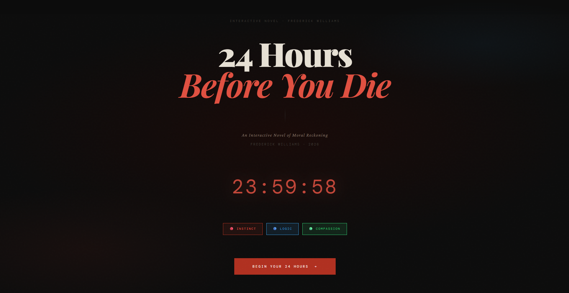 24 Hours Before You Die is a fully interactive moral novel where every decision shapes your final identity.